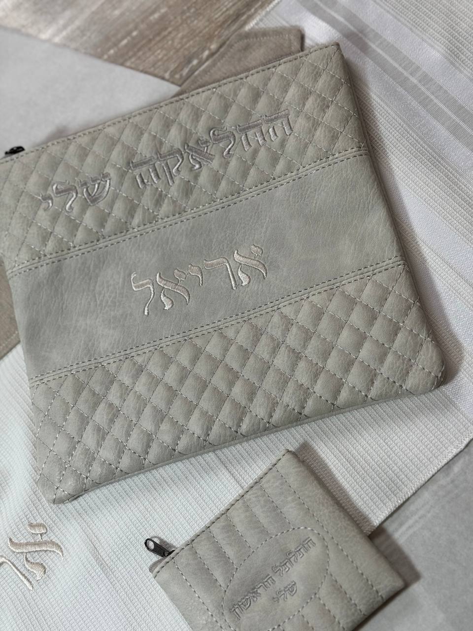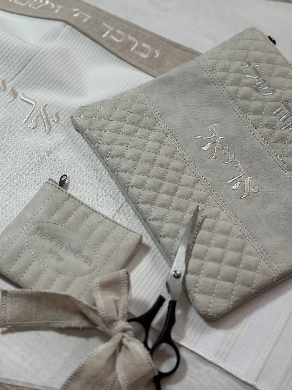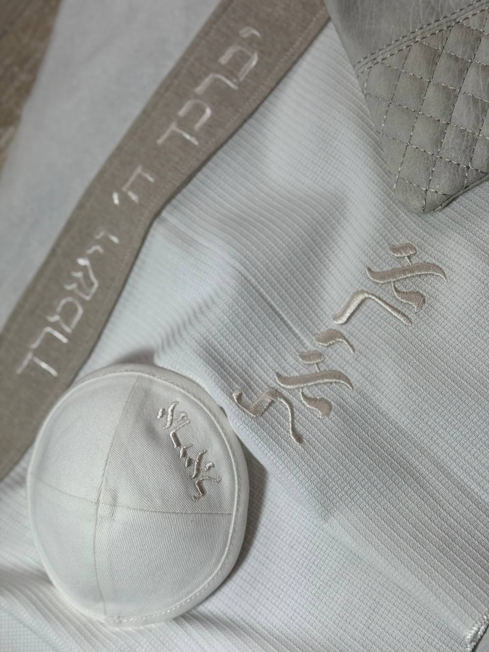 *טלית רקומה עם עטרה בעיצוב אישי "יברך ה' וישמרך" + רקמת שם