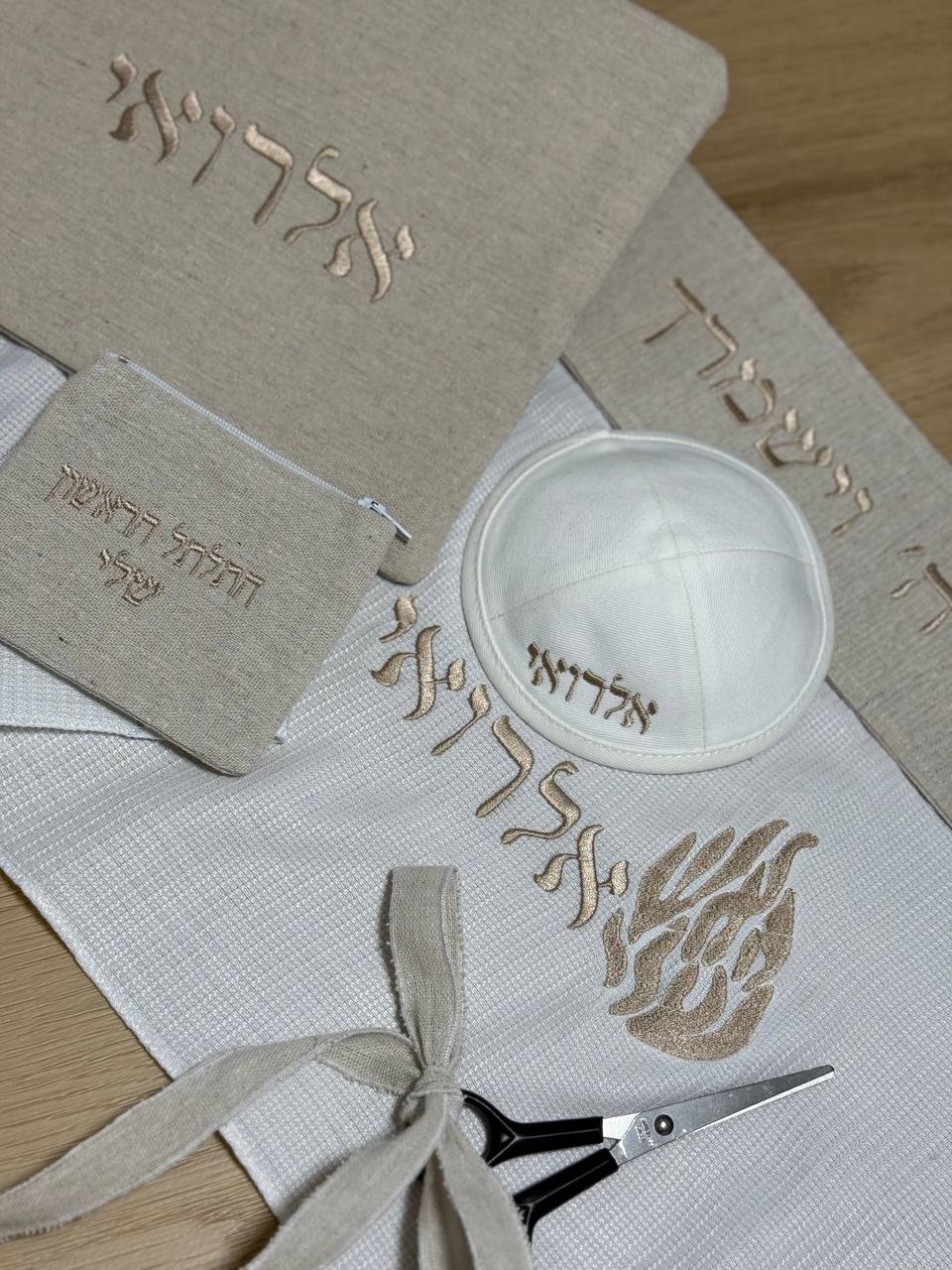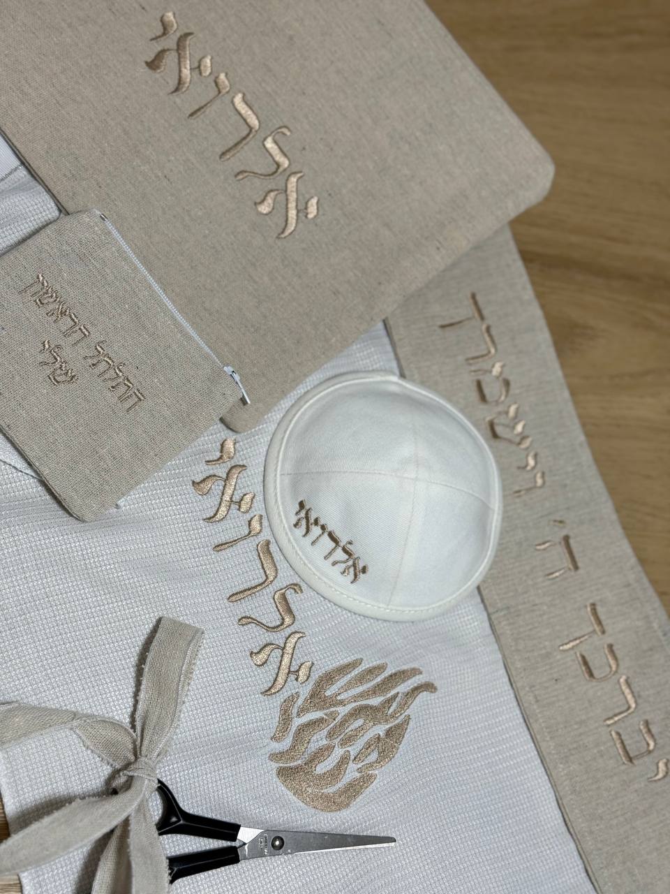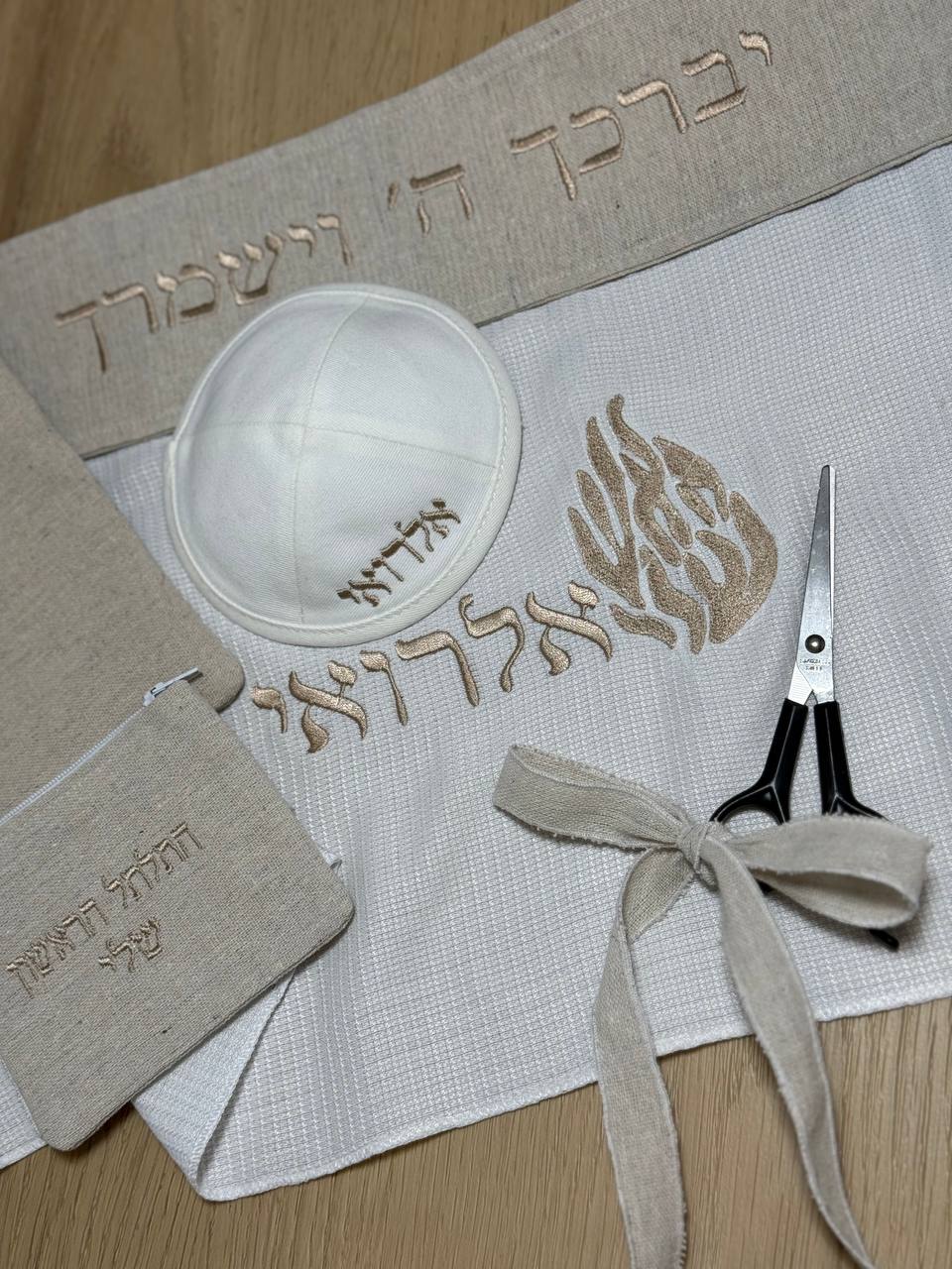ניתן להוסיף סידור תואם רקום שם וגופיה ציצית